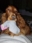Er veranderde ook iets bij Bina, onze golden cocker. Zij had als pup al extreme problemen met haar ogen. Ze had altijd een hele natte vacht, soms tot aan haar lippen. Toen niets hielp, gingen we naar een oogarts. Hij zei dat de openingen misvormd waren en dat daardoor het vocht niet weg kon lopen. We stonden op het punt om geopereerd te worden om dit te corrigeren.